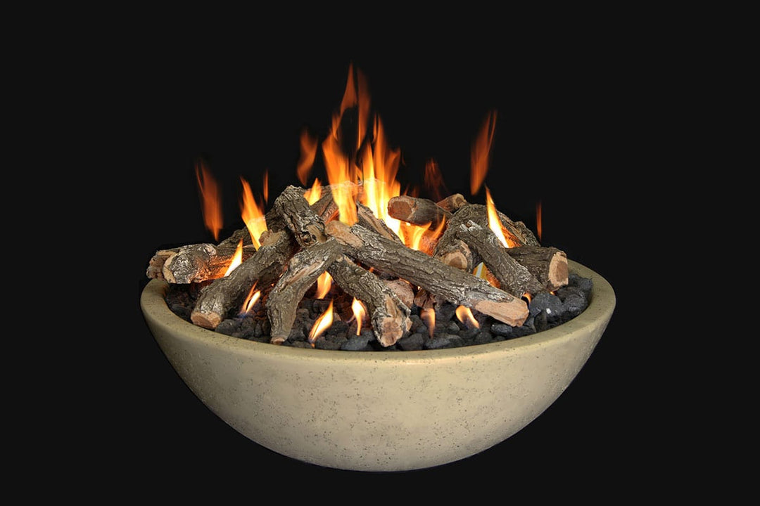 The Fire Bowl collection is constructed from GFRC (Glass Fiber Reinforced Concrete) with color dyed-through in through & molded off our proprietary designs. Our fire bowls are designed to complete your outdoor entertaining experience. All bowls are available in Natural Gas or Liquid Propane, match lit or Hot Surface Electronic Ignition & 3 stunning unique colors. For the media add one of seven unique ½" Reflective glass colors, Lava Rock, Tumbled Lava Stones, Arizona Weathered Oak, Aspen Birch, or Western Driftwood fire pit logs.