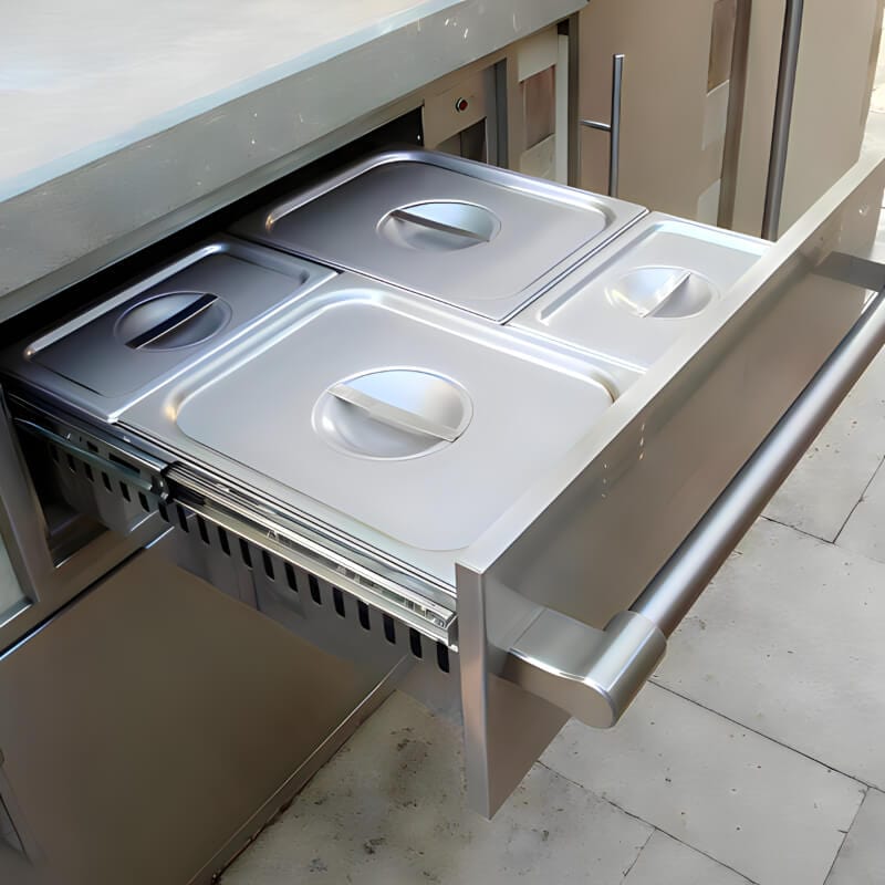 Equipped with electronic temperature control, this warming drawer ensures precision temperature management for freshness. The front ventilation system prevents moisture buildup, keeping your food fresh and preventing sogginess. Whether you're serving delicate pastries or heartier dishes, this drawer ensures that every dish is warmed to perfection.