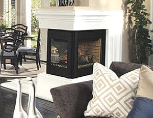 The bedroom, bath, study, or den. Virtually anywhere you can imagine a fireplace, the Eros Multi-View Series gas direct vent fireplace fits right in without taking up additional floor space. Its compact design is the smallest footprint in the industry, yet it offers the largest viewing area and flame presentation for its size. Enjoy the beauty of fire from multiple rooms.