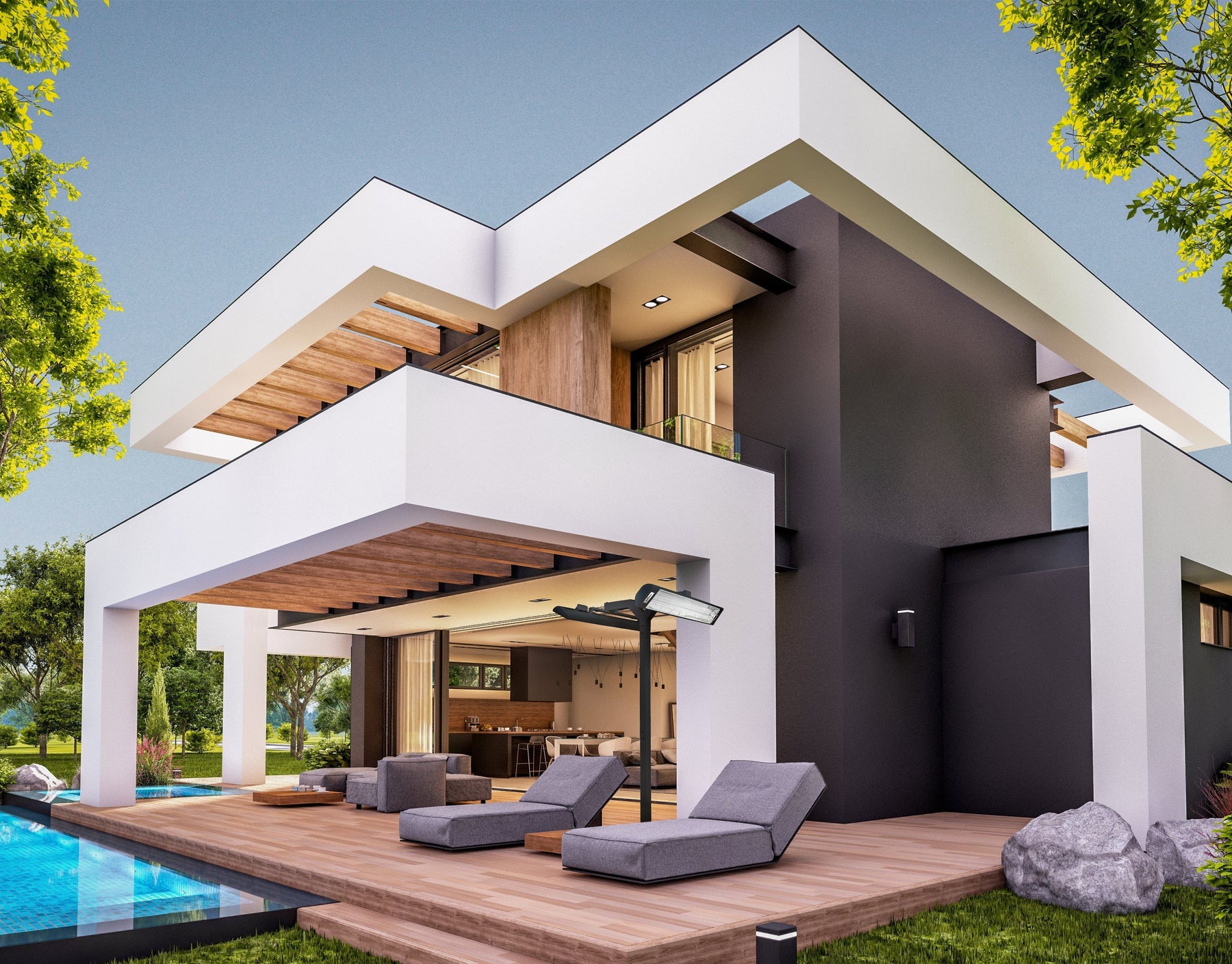 Eurofase EF50 Series 39-inch White Stainless Steel Dual Element 5000 Watt 240V Electric Patio Heater with Decor Plate