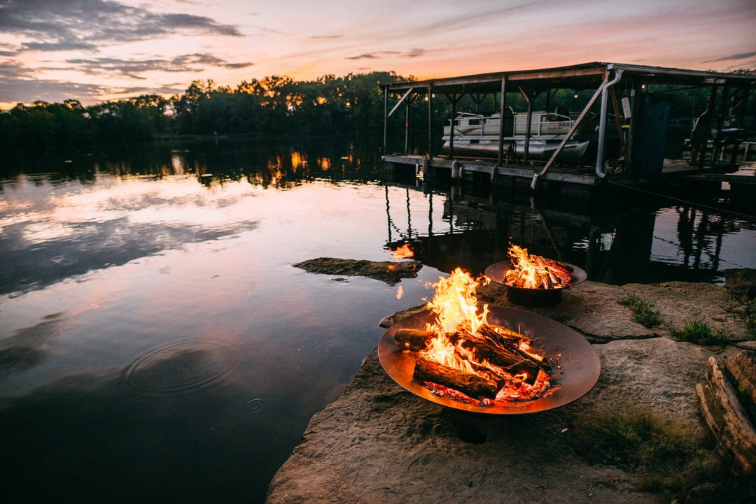 NOTE: Do not tarp your fire pit, the tarp will cause the patina to blacken and stop the oxidation process. In many cases, the color of the tarp will transfer to the new steel. During the maturing process keep wet leaves and debris off the piece until the steel matures. Allow the piece to mature with each fire. Sit back, relax and enjoy your new Fire Pit Art®.