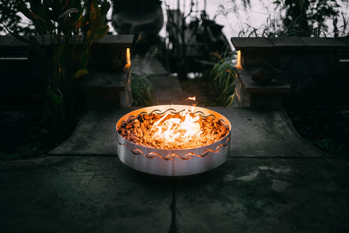 The graceful curves of fire seen through the openings in the Fire Surfer remind us of the hypnotic waves that have lapped our shores for thousands of years while we sat oceanside enjoying a meal, a fire, and our families. Sturdy eleven gauge steel allows this fire pit to be portable should you so desire to take the fire to that beach you love.