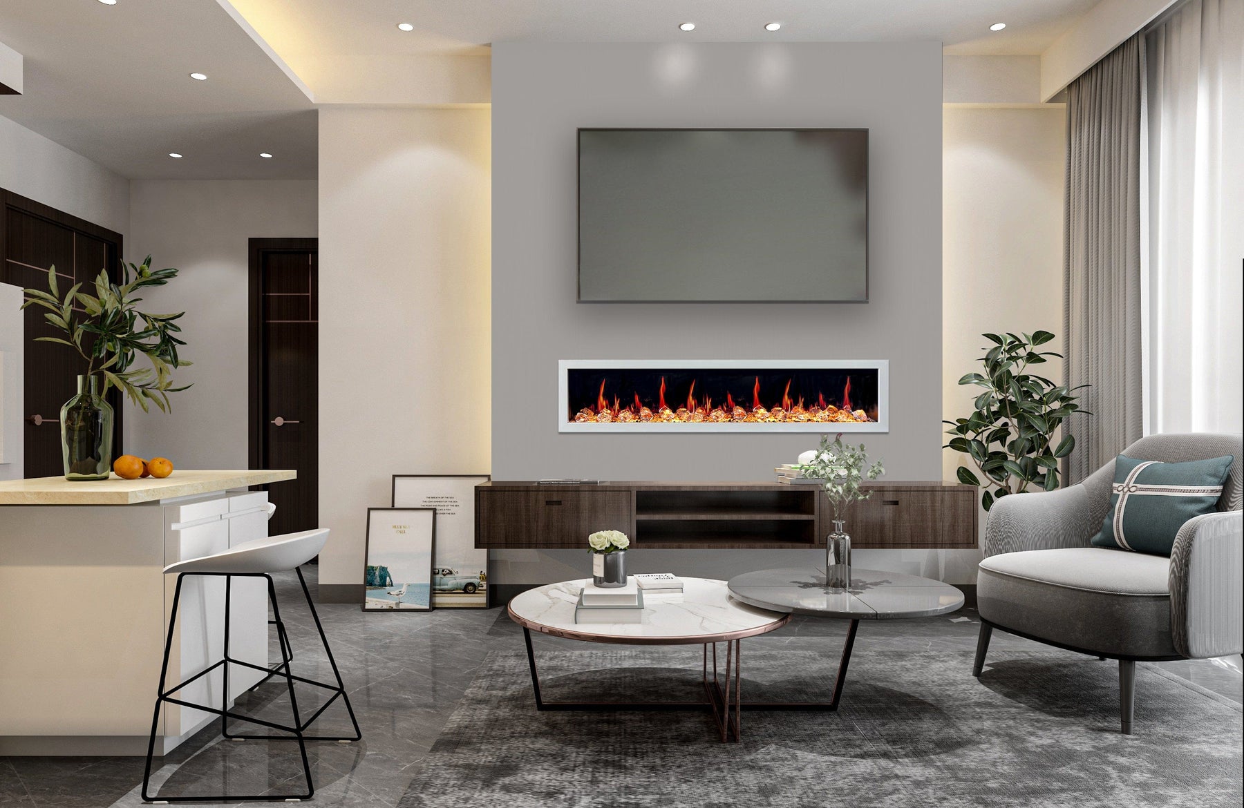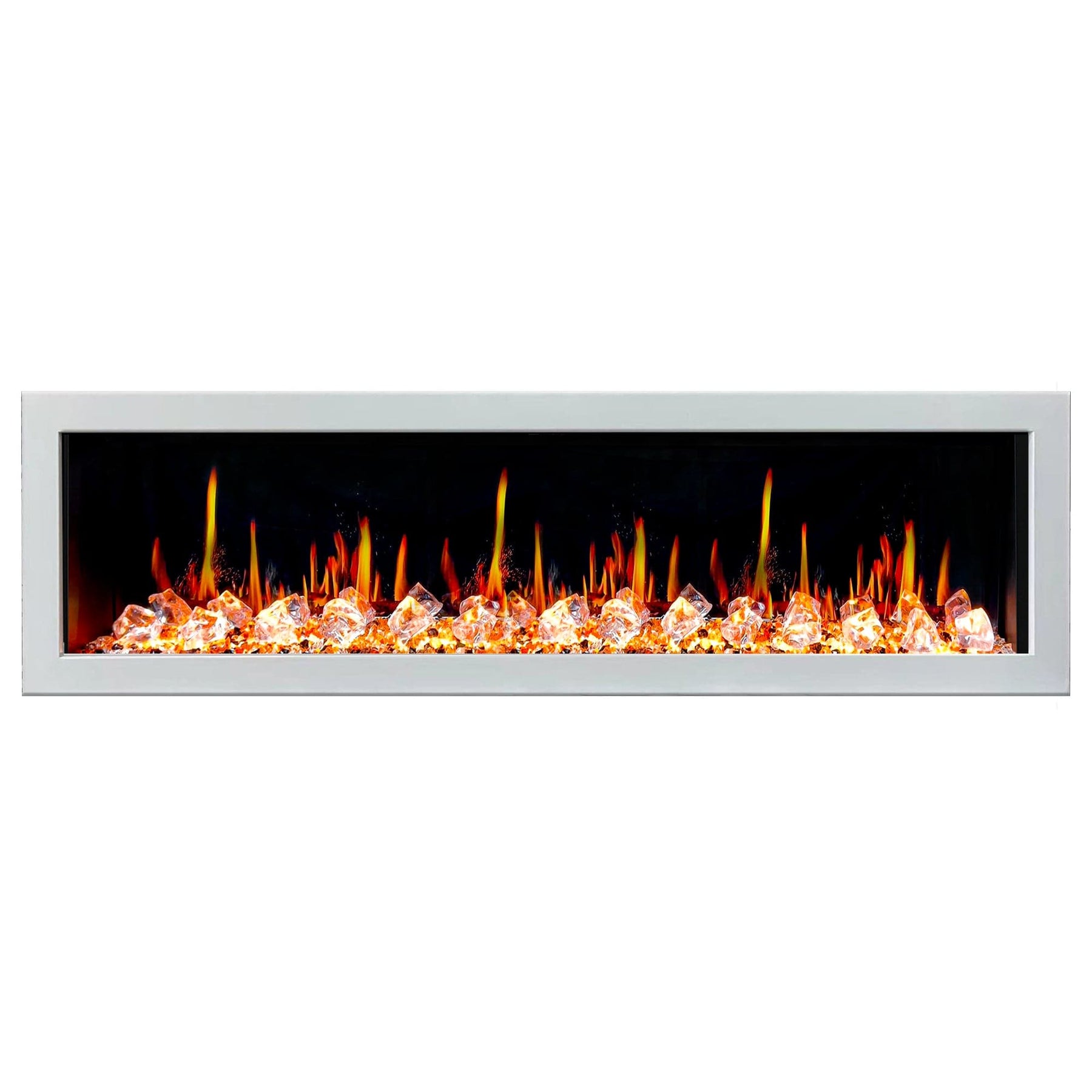 Litedeer Homes Gloria II 78-inch Seamless Push-in White Frame Electric Fireplace with Acrylic Crushed Ice Rocks ZEF78VCW