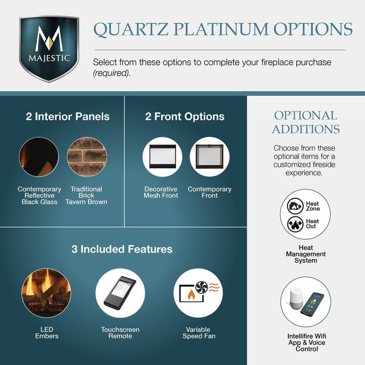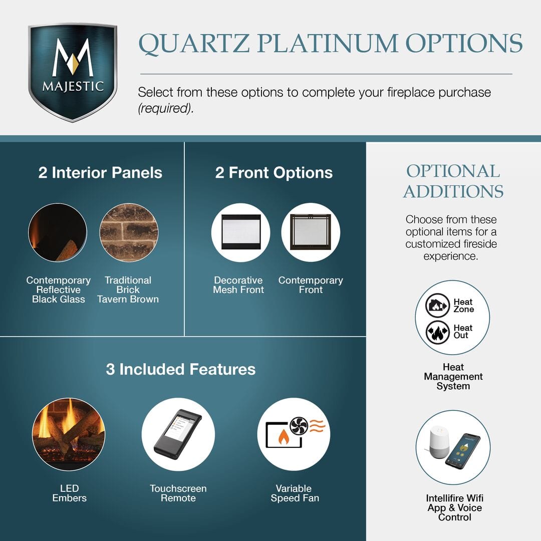 Majestic Quartz Platinum 36" Top/Rear Direct Vent Fireplace with Intellifire Touch ignition QUARTZPLA36I