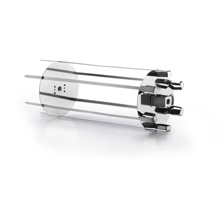 Build colossal kebabs and make masterful meals using the Napoleon Rotisserie Shish Kebab Wheel. This unconventional way to grill skewers is a conversation starter that allows you to continue the conversation instead of monitoring your kebabs constantly. Create custom meals for everyone in an easy-to-use barbecue grill accessory. Simply thread your favorite foods onto the wide skewers and load them onto the wheel and rotisserie spit rod. Use the infrared rear burner or main bottom burners on the barbecue grill to perfectly cook every single morsel. Chrome-plated parts are easy to clean and assemble. This unit will fit most rotisserie spit rods. Spin your next meal right round with a healthy and delicious way to cook on a barbecue. Clever, multifunctional and easy to maintain, every kitchen benefits from the addition of a Napoleon barbecue accessory. Our accessories provide you with the essentials to create delicious grilled food and then some to enhance your cooking arsenal with a wide variety of creative additions to broaden your culinary horizons.
