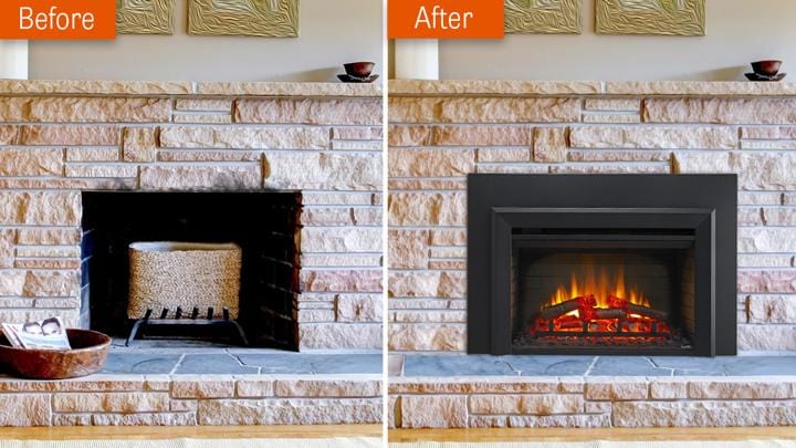 - Install into a Wood Fireplace with a Surround Kit or any Framed Opening with Self-Trimming Design