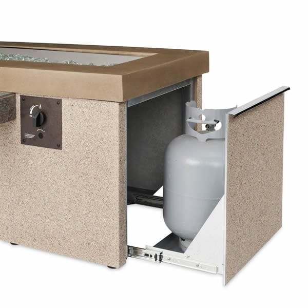- Sliding access door conceals standard 20 lb. propane tank in base