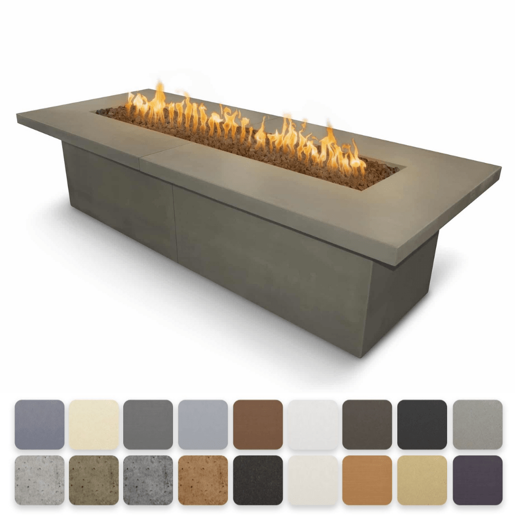 The Outdoor Plus Newport GFRC Concrete Rectangle Fire Table is available in Natural Gas and Liquid Propane & also available in 72", 120" and 144" sizes.